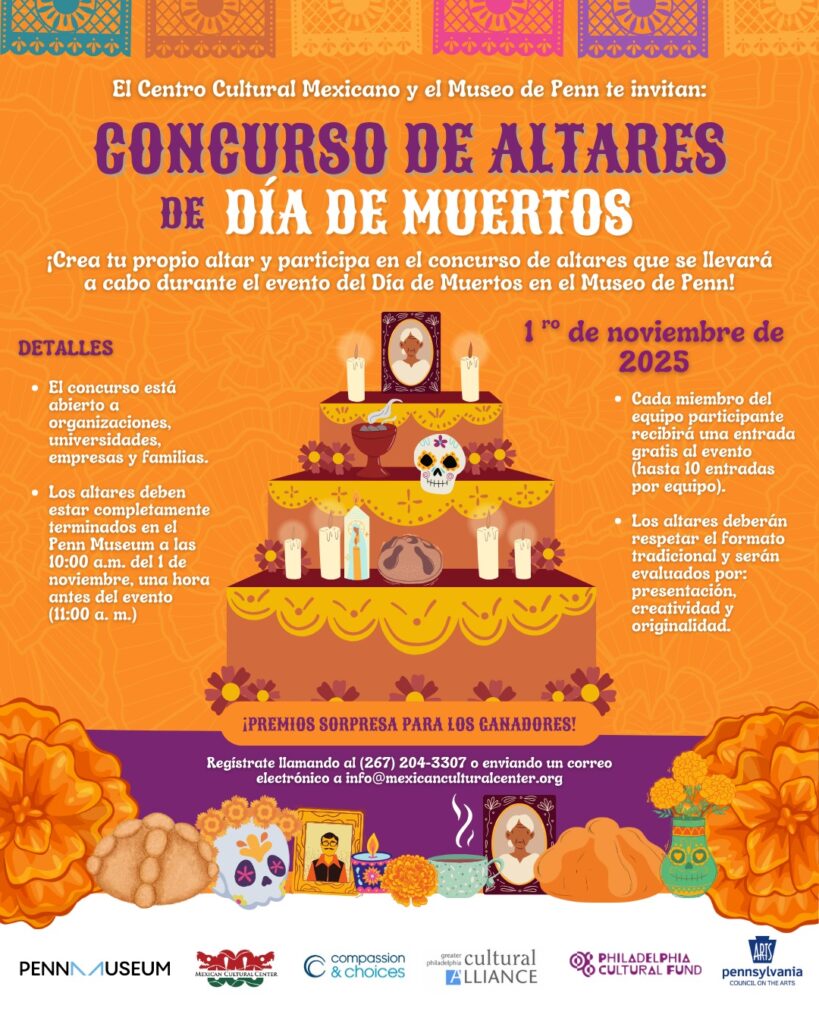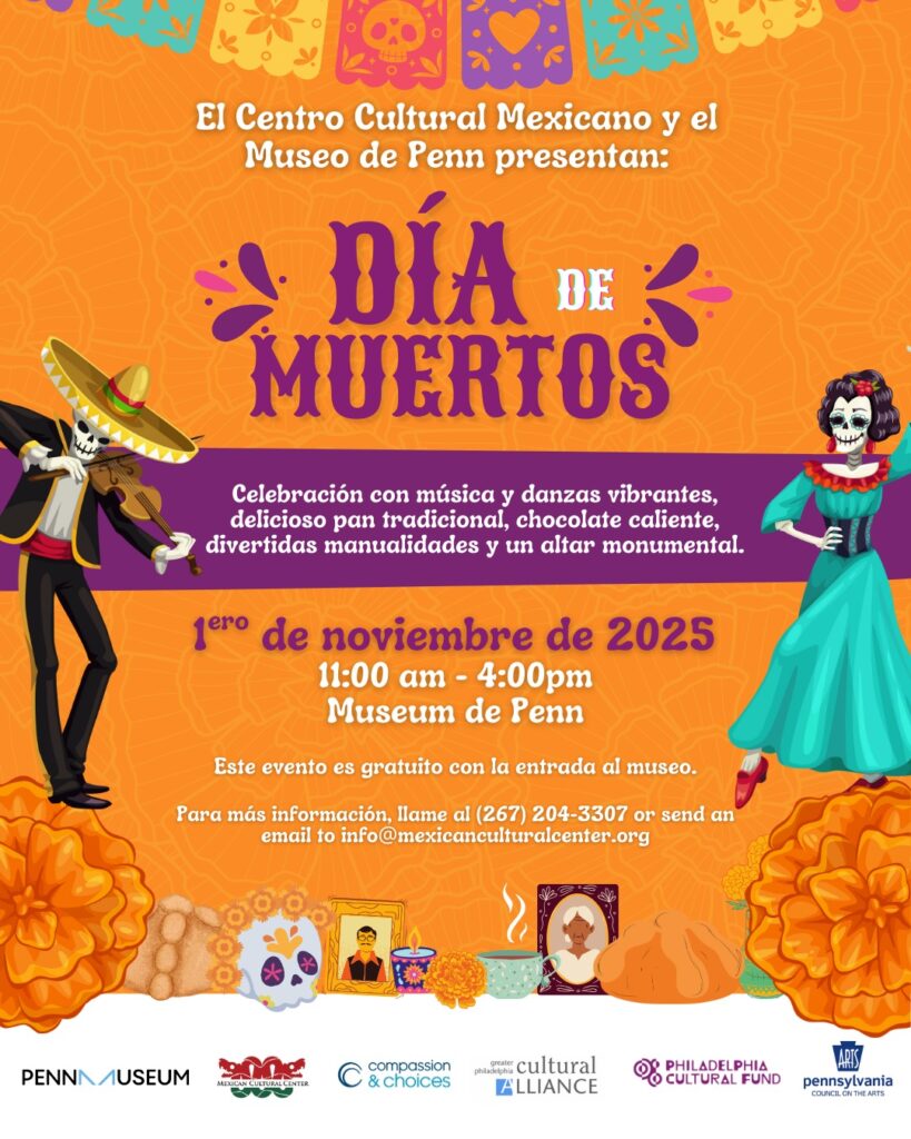 Este es el corazón de la celebración popular en el sur de Filadelfia. La Asociación de Empresarios Mexicanos confirma que este evento, gratuito y familiar, busca celebrar la tradición directamente en la comunidad. Se instalará un gran altar comunitario donde el público podrá colocar fotos de sus seres queridos. El festival contará con música en vivo, mariachi, danza folclórica y actividades para niños, reafirmando a la Calle 9 como el epicentro de la cultura mexicana en la ciudad.