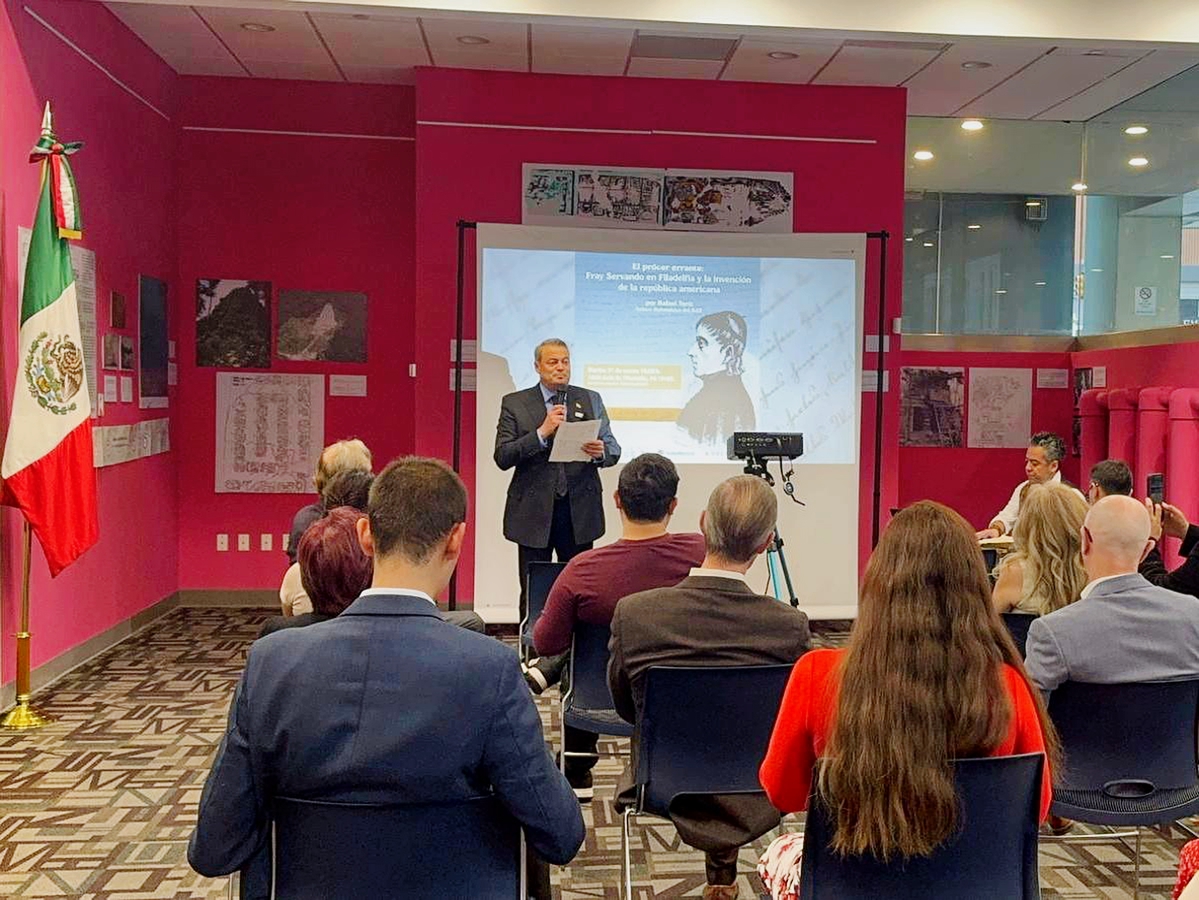Filadelfia PA. abril 1 2026.  En una tarde que empieza a sentirse la Primavera, el Consulado de México se convirtió en un portal al pasado. Bajo la anfitrionía del Cónsul titular, Carlos Obrador Garrido Cuesta, la comunidad se reunió para redescubrir a un personaje que parece sacado de una novela de aventuras, pero cuyas ideas cimentaron las bases de nuestra identidad: Fray Servando Teresa de Mier.
